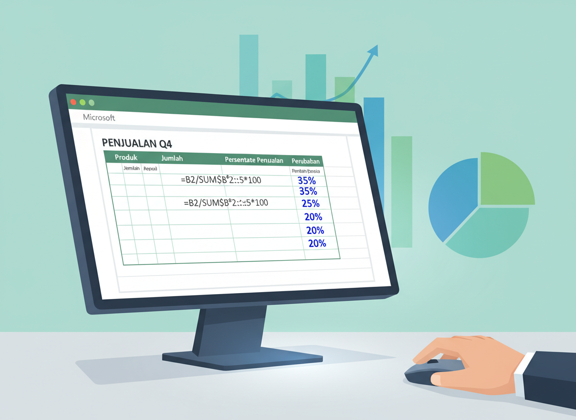 Secara matematis, persentase adalah cara untuk menyatakan sebagian dari keseluruhan sebagai pecahan dari 100. Rumus dasarnya adalah (Bagian / Keseluruhan) * 100. Di Excel, Anda tidak perlu mengalikan dengan 100 secara manual jika Anda memformat sel sebagai ‘Percentage’.